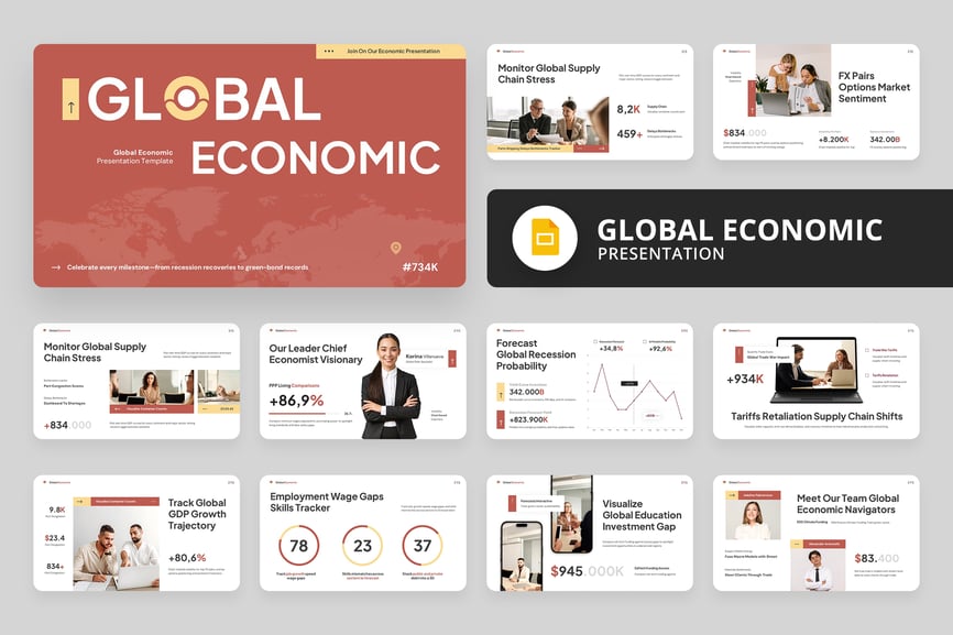使用**全球经济谷歌幻灯片演示文稿**,轻松分享您的想法并给您的观众留下深刻印象。