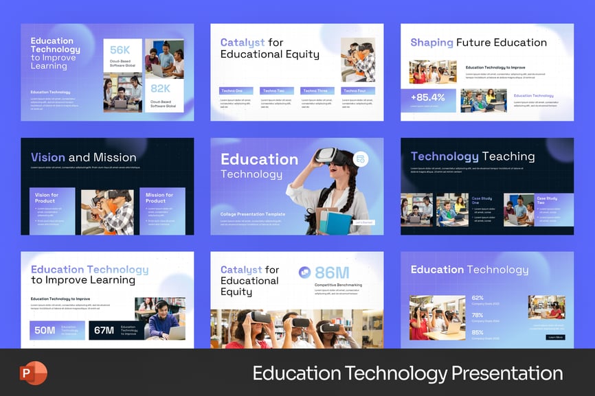 使用教育技术 PowerPoint 演示模板,自信地展示您的教育技术理念——这套现代、简洁、专业的幻灯片专为在线学习、数字课堂、LMS 平台、电子学习创业公司、培训计划和教育业务推介而设计。