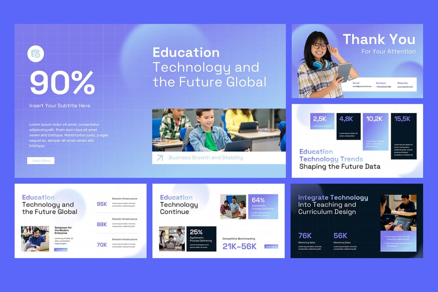 无论您是推出教育应用程序、展示智能教室解决方案,还是准备培训研讨会演示文稿,此模板都能为您提供具有强大影响力、数据驱动且面向未来的设计,让您脱颖而出。