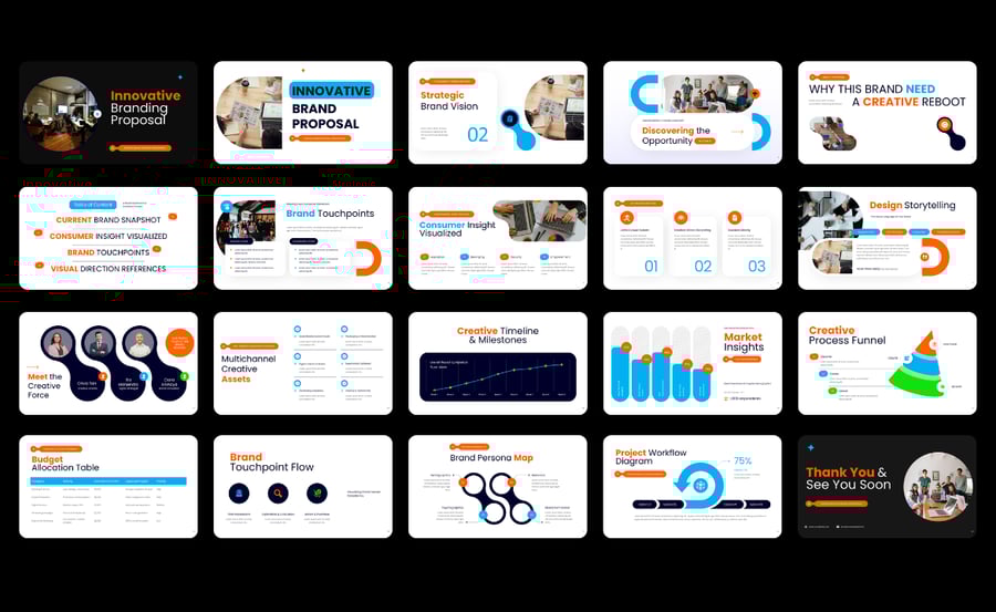 这款演示文稿模板非常适合代理机构、自由职业者和专业人士使用。它采用现代、简洁且专业的设计理念,让您在几分钟内即可创建高质量的演示文稿。告别从零开始的繁琐,将宝贵的时间和精力集中在打造引人入胜的内容上,而现成的精美视觉效果也已为您准备就绪。