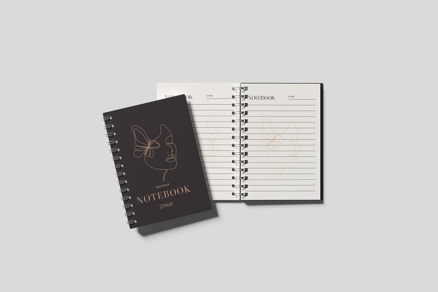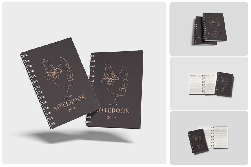 用这些精美的样机展示您的笔记本样机设计。此样机包含 4 个元素,并配有分层清晰的 PSD 文件。此外,此样机还采用了智能对象功能,这意味着您只需几秒钟即可轻松快捷地将当前设计替换为您自己的设计。
