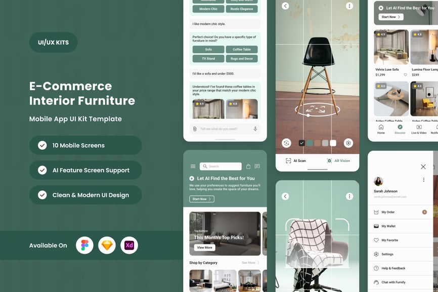 Roomify 以其简洁优雅的设计重新定义了移动购物体验,专为室内家具电商而打造。这款应用界面设计精巧,优化了结账流程,并以赏心悦目的视觉效果展示家具产品。现代简约的中性色调搭配鼠尾草绿的点缀,营造出奢华质感。AI 智能推荐和 AR 查看等先进功能进一步提升了用户满意度,使其成为设计师、艺术总监和自由职业者打造一流电商体验的理想之选。