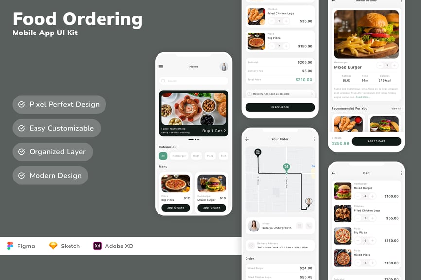 每个屏幕都可完全自定义,易于使用,并针对 Figma、Sketch 和 Adobe XD 进行了精心设计。
