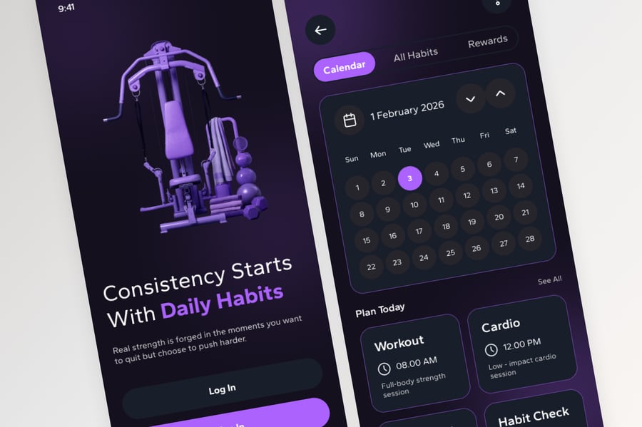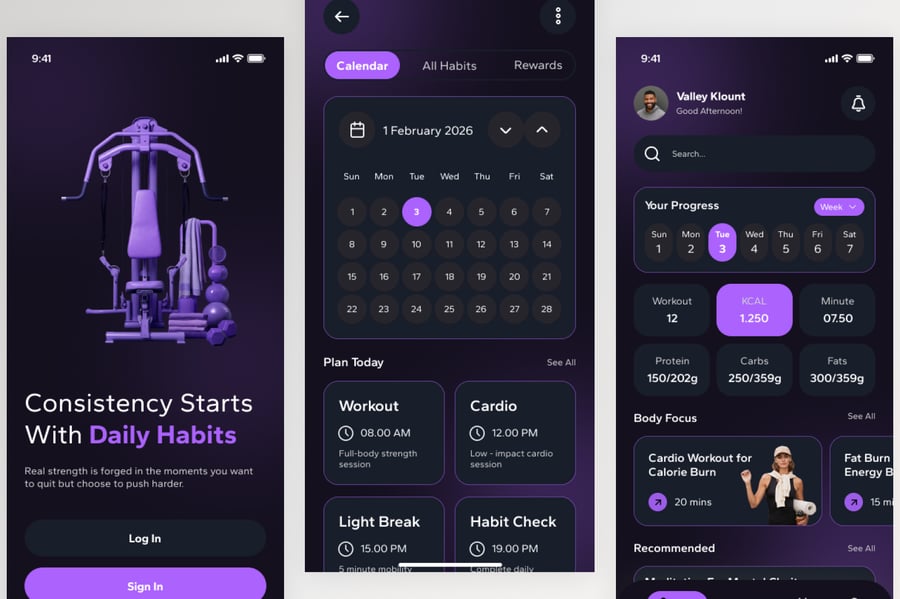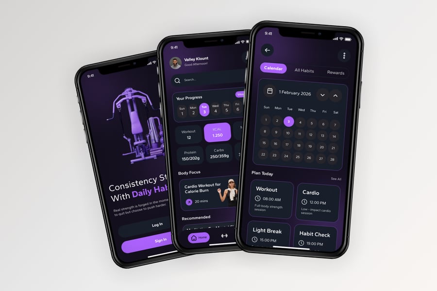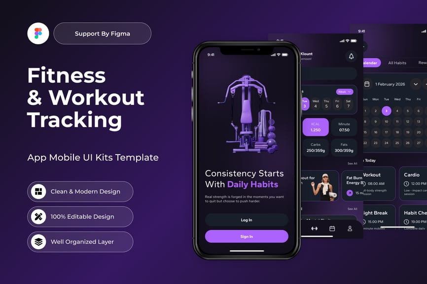 使用这款专业设计的模板,轻松打造功能强大的健身与锻炼追踪移动应用。