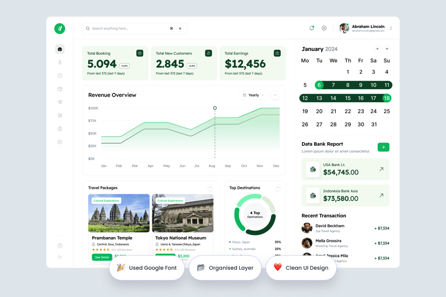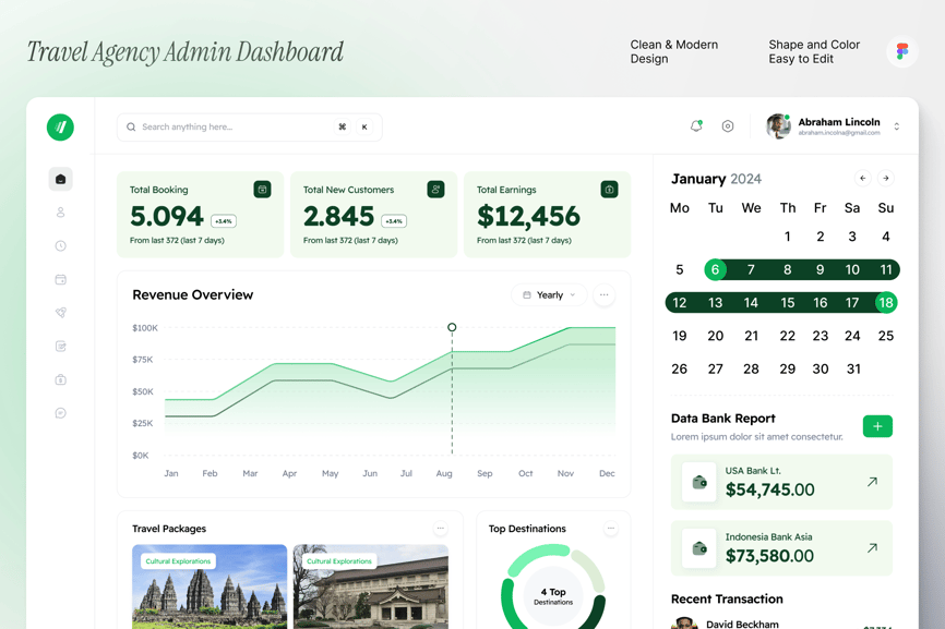 Globo 为旅游管理提供了一个简洁直观的管理界面。它能帮助用户将预订洞察、目的地表现和运营数据整理成视觉一致且易于理解的格式。