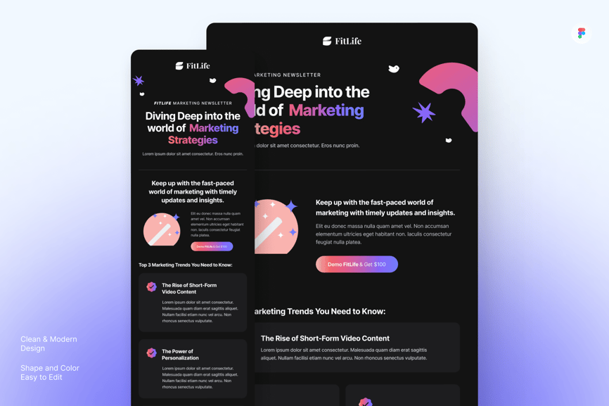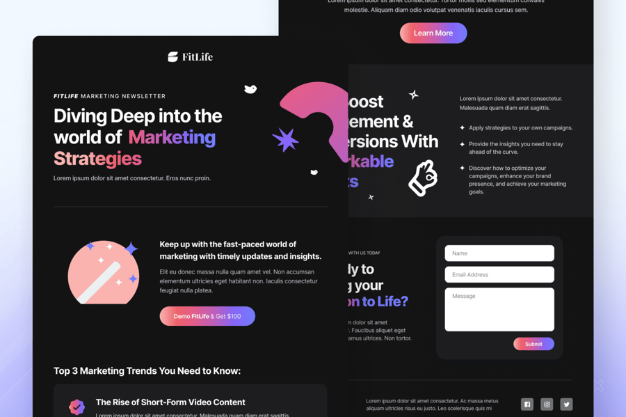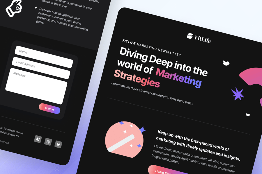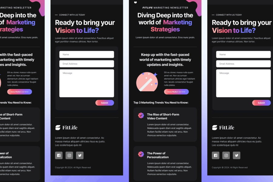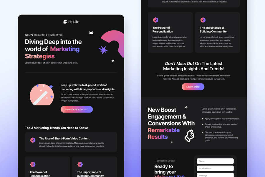 FitLife – 深色模式营销电子邮件简讯用户界面