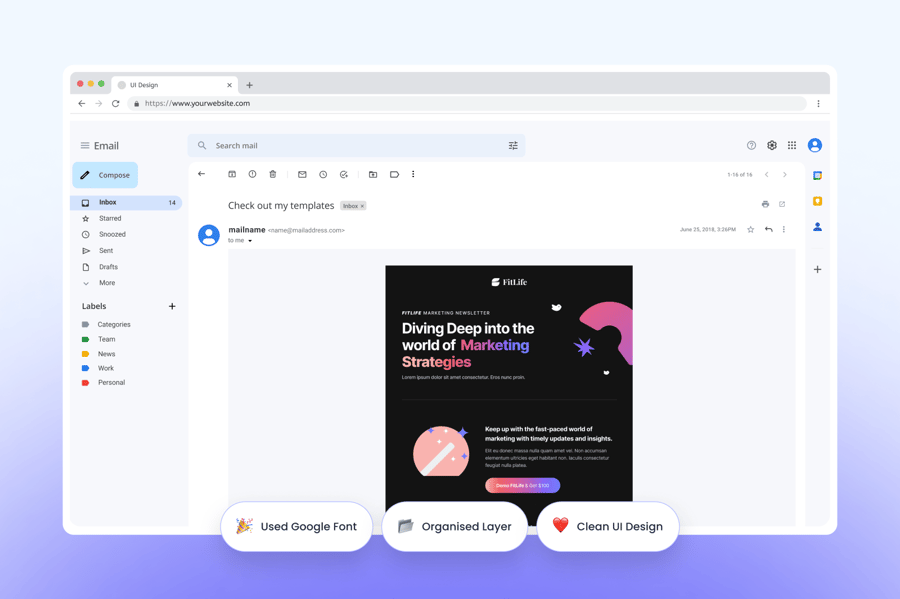 这款深色模式的简报 UI 套件专为健康和健身企业量身打造,旨在提升其邮件沟通体验。