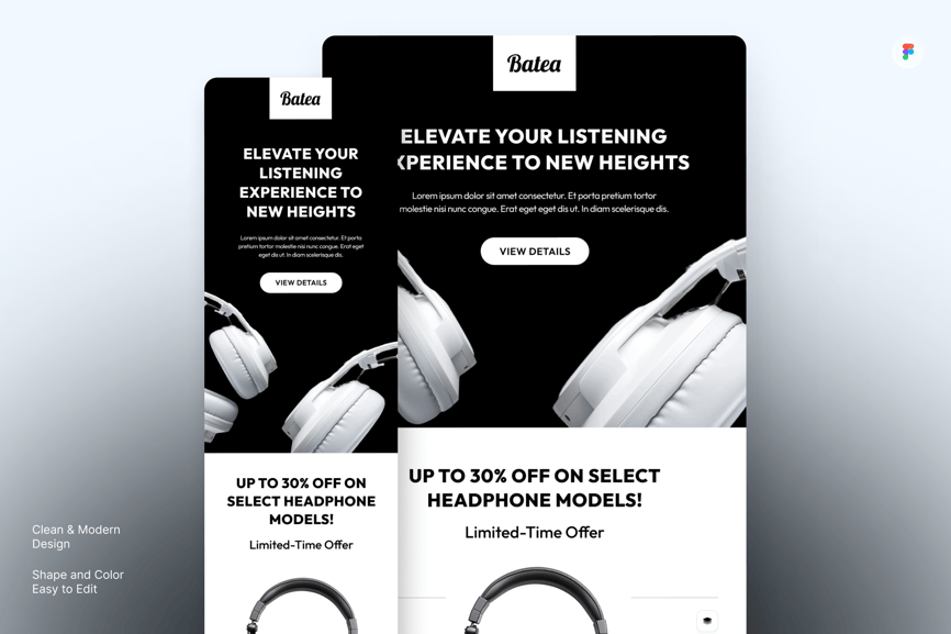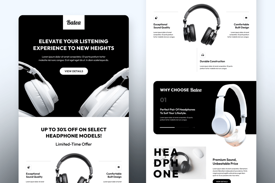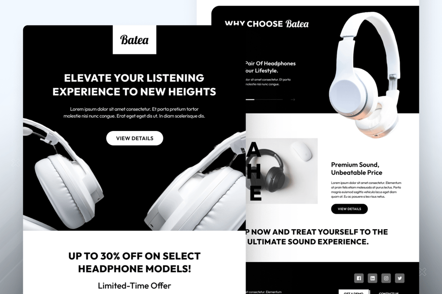 Batea – 耳机促销电子邮件简讯 UI 套件