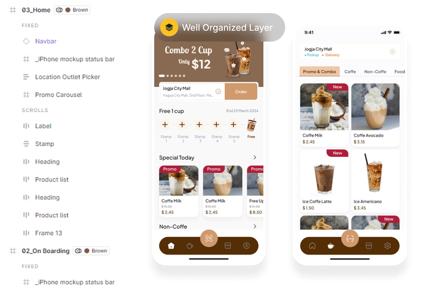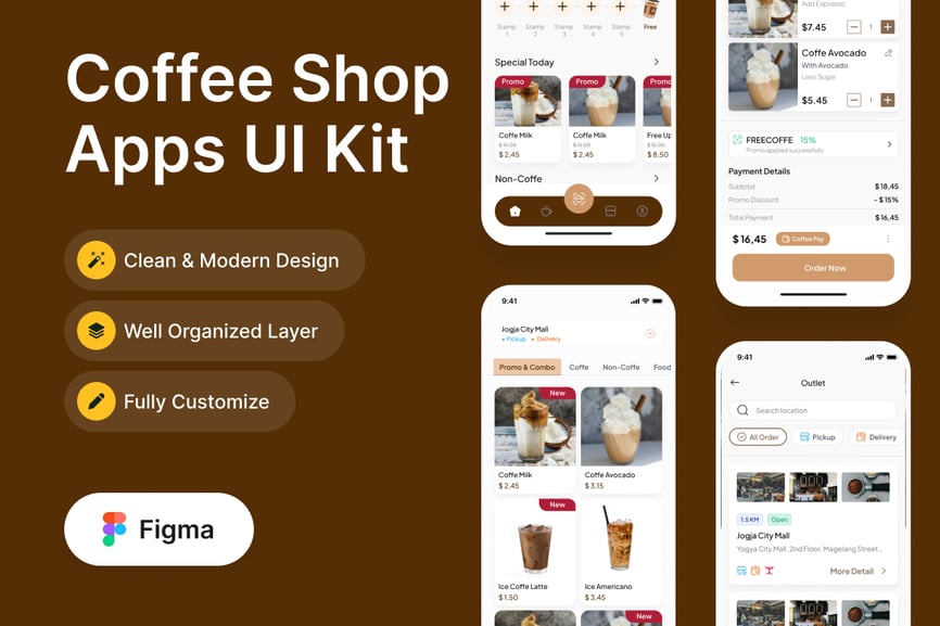 您好!这里是咖啡店移动应用UI工具包,只需导入即可用于您的咖啡店移动应用设计流程!