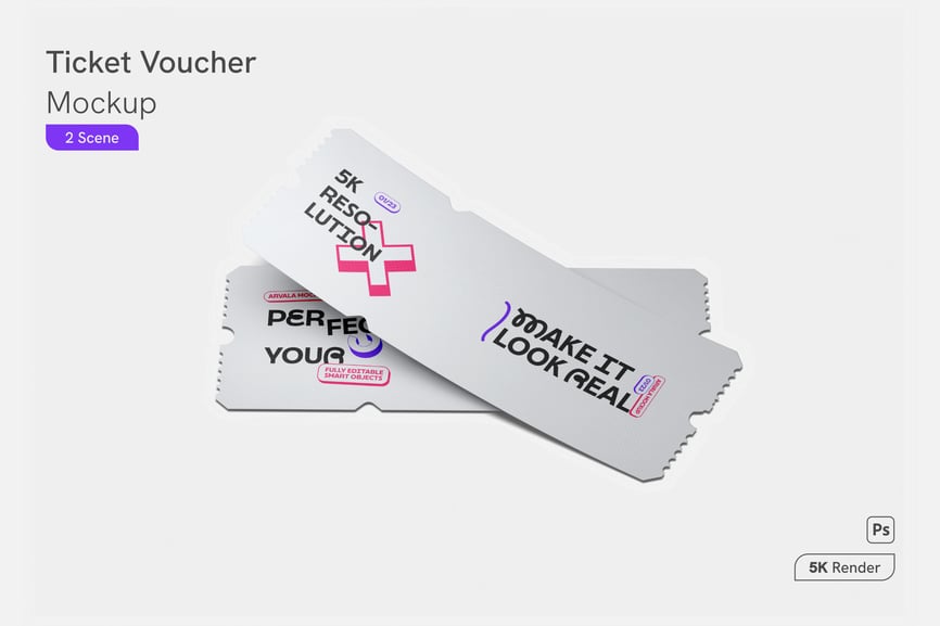**票券样机 – 简洁醒目的宣传展示**
