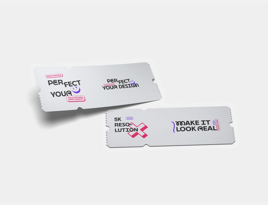 使用这款逼真的票券样机,完美展示您的活动门票、礼品卡或折扣券,以简洁专业的格式呈现品牌、活动信息或宣传设计。非常适合用于音乐会、赠品或作品集展示。