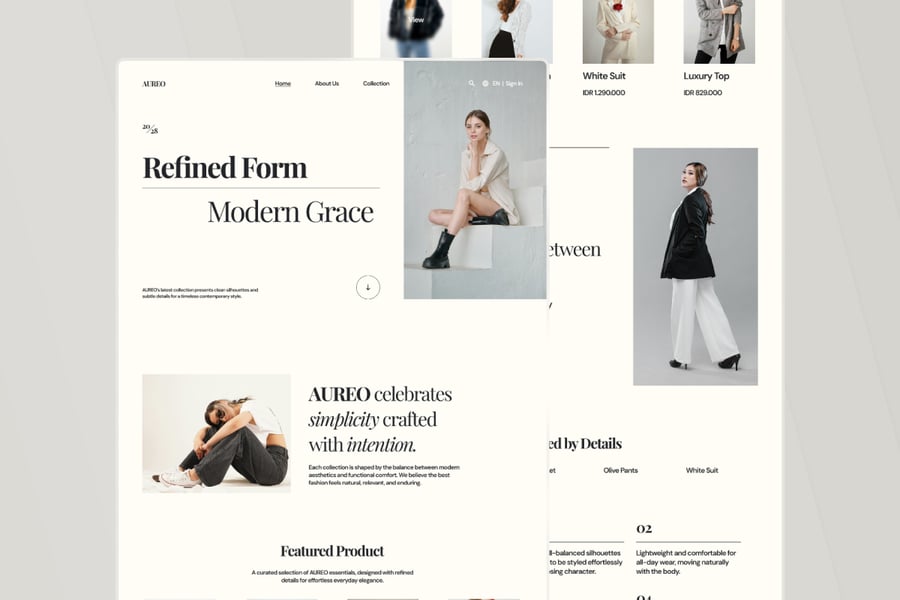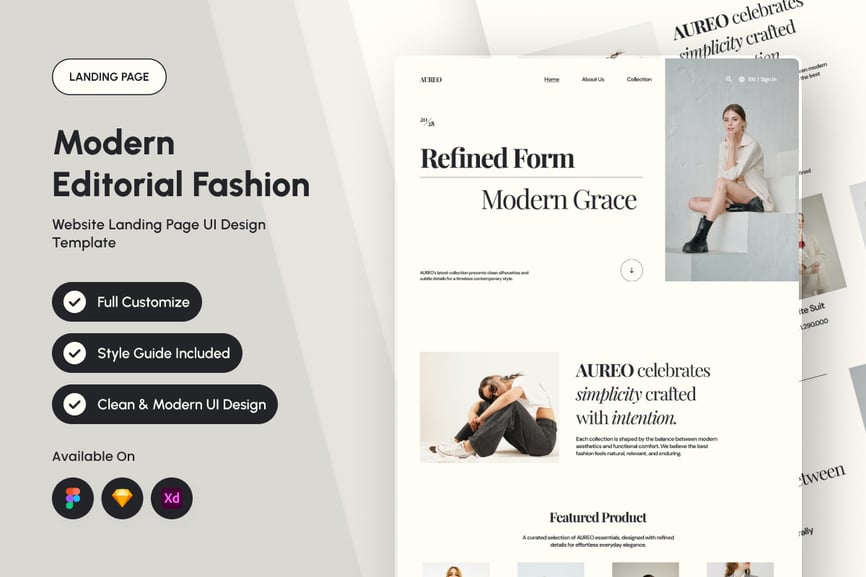 Aureo 完美适用于需要简洁专业网站布局,并面向高端受众的平面设计师、艺术总监和自由职业者。它能以成熟、精致且极具视觉冲击力的方式呈现时装系列、数字产品图册或创意作品集。这款 UI 套件完全可定制,并采用分层式设计,是您在竞争激烈的时尚生活行业打造卓越线上形象的理想之选。