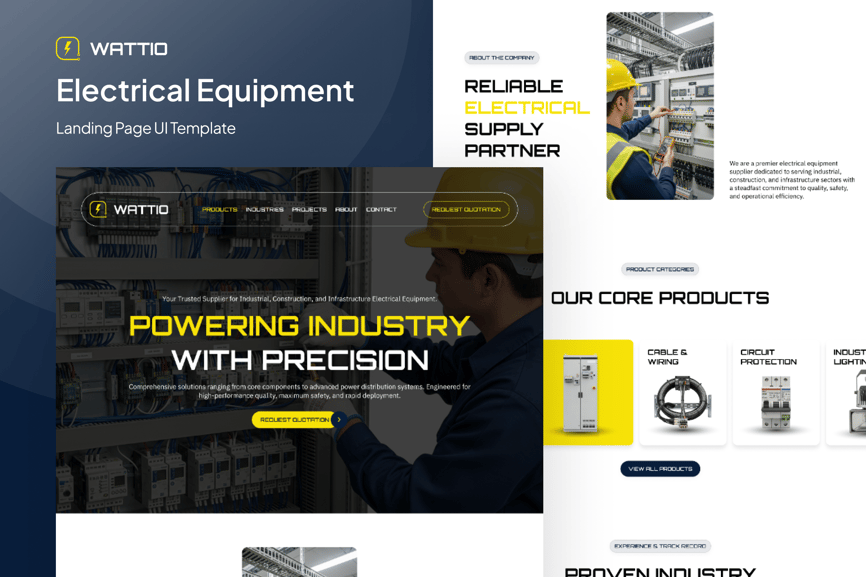 Wattio 是一款现代化的电气设备供应商落地页,旨在清晰自信地展示工业级产品。Wattio 结构清晰、专业,是电气分销商、制造商和五金供应商的理想之选。它重点突出产品类别、技术规格、认证和服务可靠性,帮助企业权威可靠地展示其电力解决方案。