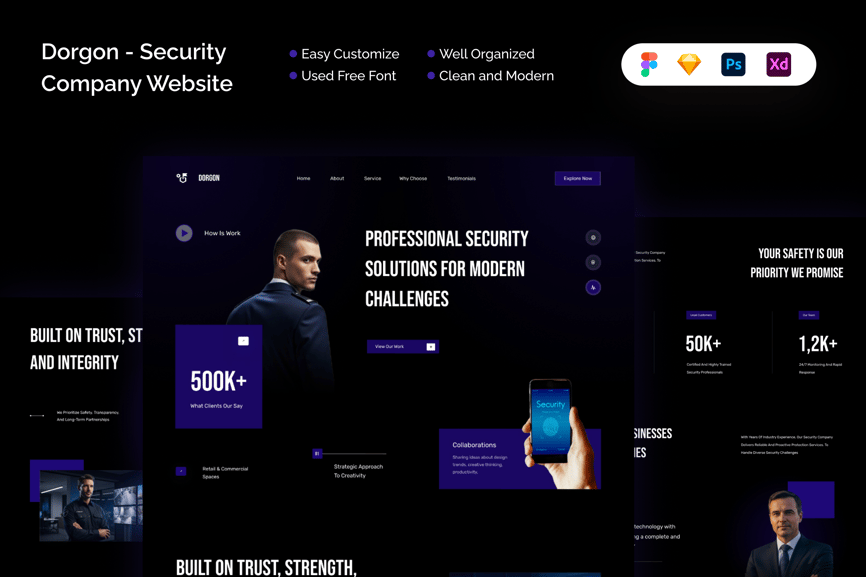 **Dorgon – 安保公司网站** 此模板的设计不仅引人注目,更能与您的受众产生共鸣。从简洁流畅的用户界面到极具说服力的品牌形象,我们专注于将您的愿景转化为视觉震撼的现实。我们融合艺术巧思与尖端科技,将创意变为现实,确保每个设计都能讲述一个引人入胜的故事。加入我们,开启一段创意之旅,让我们助您将品牌提升至全新高度。