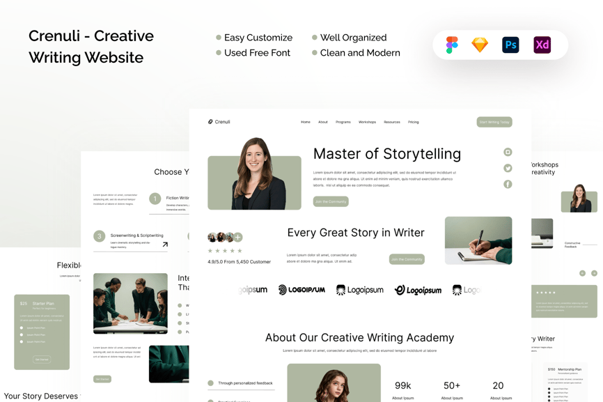 **Crenuli – 创意写作网站** 此模板的设计不仅引人注目,更能与您的受众产生共鸣。从简洁流畅的用户界面到极具说服力的品牌形象,我们专注于将您的愿景转化为视觉震撼的现实。我们融合艺术巧思与尖端科技,将创意变为现实,确保每个设计都能讲述一个引人入胜的故事。加入我们,开启一段创意之旅,让我们助您将品牌提升至全新高度。