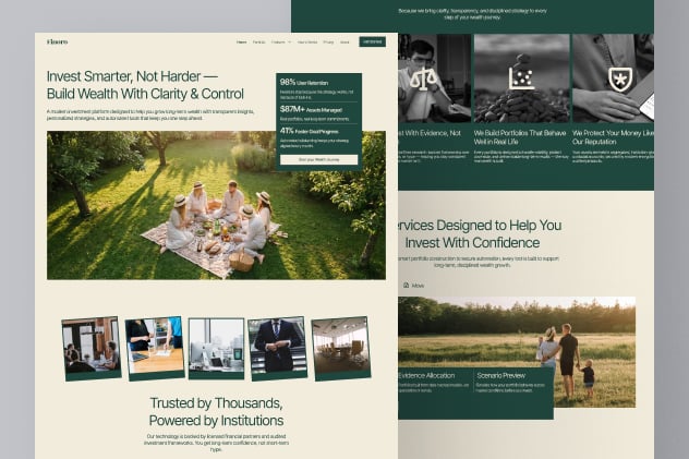 Finovo 是一款现代化的投资和财富管理落地页,专为金融科技平台、财务顾问和资产管理服务机构设计。凭借简洁可靠的布局、数据驱动的版块和结构化的服务亮点,该设计能够帮助您清晰自信地传达透明度、策略和长期财务增长目标。
