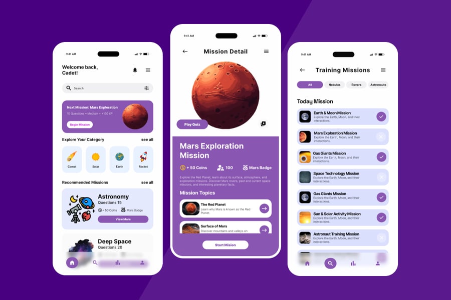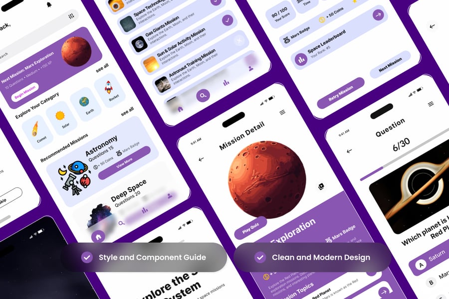 通过触感丰富、以任务为导向的用户体验,让复杂的主题变得易于理解且充满乐趣,从而吸引用户。凭借流畅的操作流程和充满活力的宇宙美学,该套件可助您在极短时间内打造出精美绝伦的世界级移动应用。立即启动您的学院,让用户通过互动问答和奖励探索宇宙奥秘!