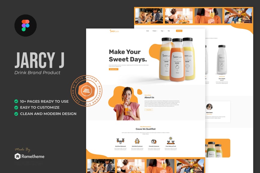 Jarcy Juice 模板专为食品饮料产品网站设计!该模板套件包含一系列理想的模板,适用于任何与食品饮料产品服务相关的企业。这款 Figma 模板拥有现代独特的设计布局,并且非常易于定制。