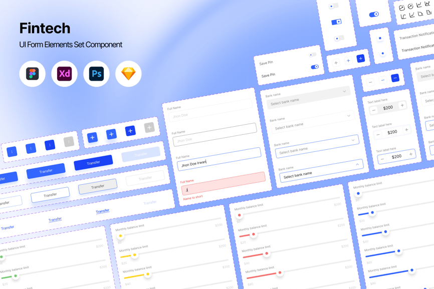 使用 Finance Form Builder Elements UI Kit 设计可靠且用户友好的财务界面。该套件包含一系列全面的表单组件,专为银行应用程序、金融科技平台和会计系统量身定制。该套件以清晰性和精确性为设计理念,包含输入字段、下拉菜单、验证状态、交易表单、上传字段和高级控件,可支持复杂的财务工作流程。
