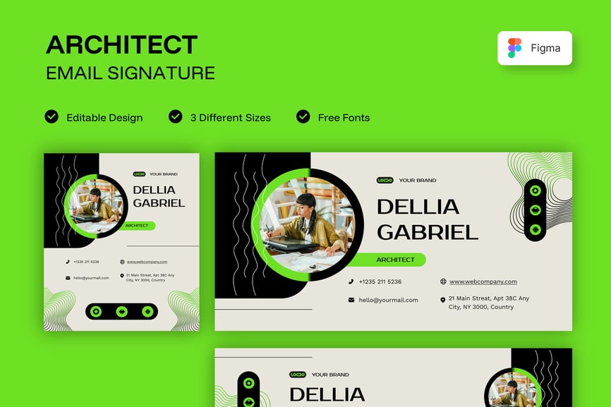 简洁专业的电子邮件签名设计,适用于商务或个人用途。一款设计提供三种不同尺寸,满足您的多种需求。现代、优雅、简洁的设计风格,令您的电子邮件签名更显专业。
