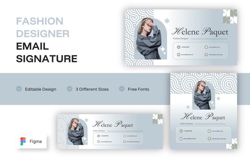 简洁专业的电子邮件签名设计,适用于商务或个人用途。一款设计提供三种不同尺寸,满足您的多种需求。现代、优雅、简洁的设计风格,令您的电子邮件签名更显专业。