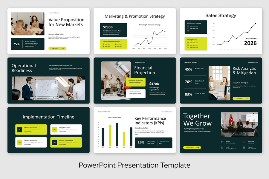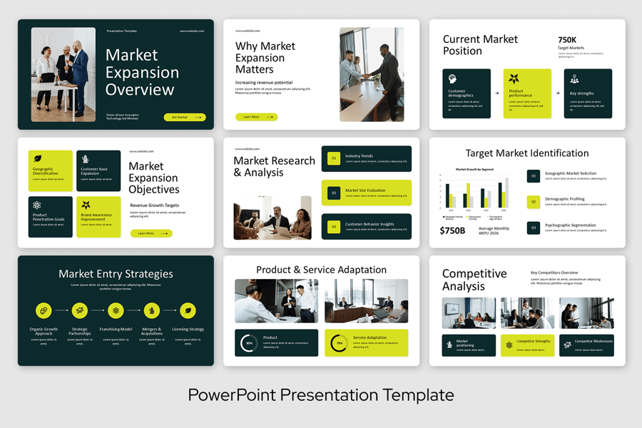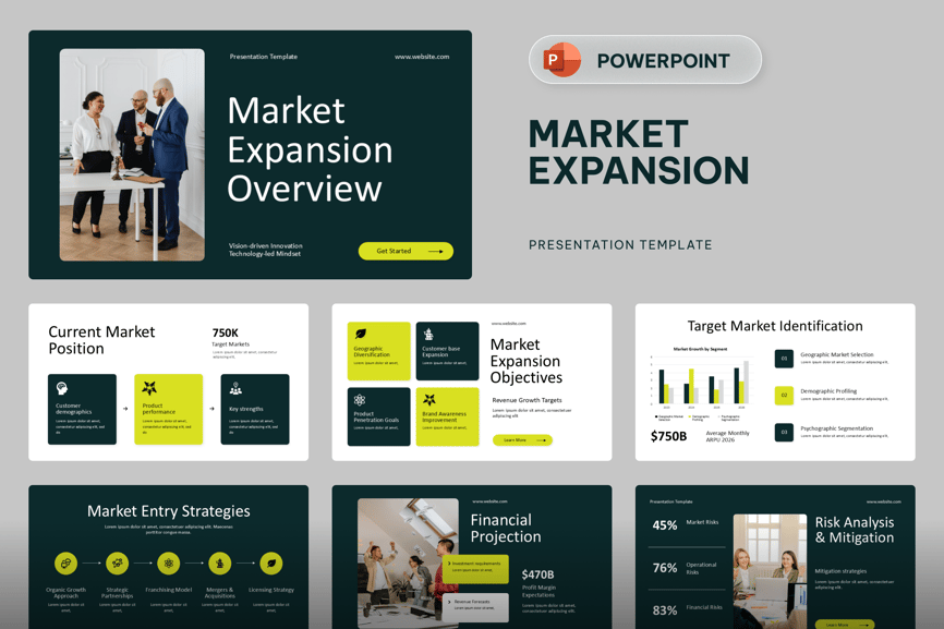 **市场拓展 PowerPoint** – 专业演示模板,适用于增长战略、市场进入和全球发展