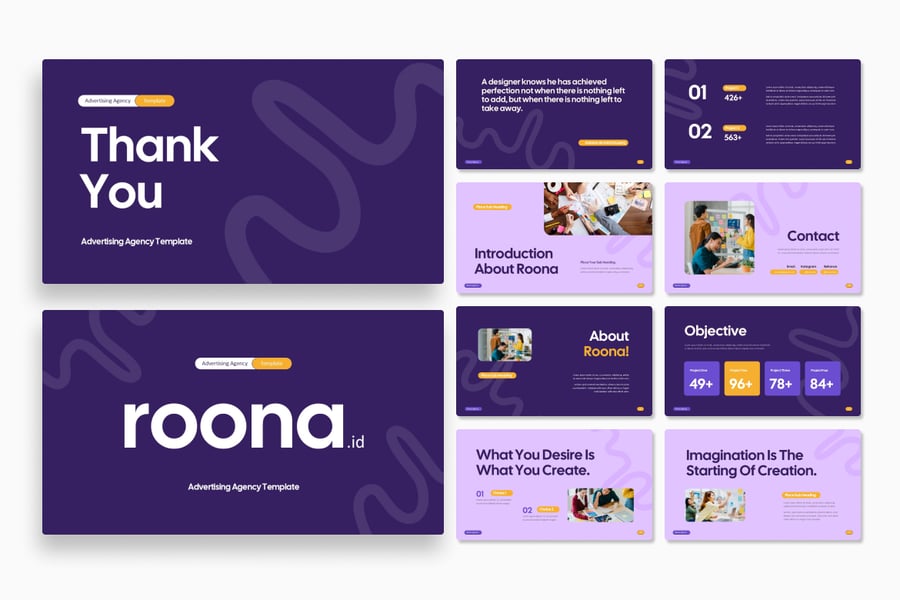 这款模板采用现代动感的设计,布局结构清晰,字体简洁醒目,视觉效果强烈,能够突出创意理念。它包含公司简介、代理服务、市场分析、目标受众、营销活动概念、项目时间表、预算以及绩效和关键绩效指标 (KPI) 图表等幻灯片。该模板易于定制,有助于在每次演示中树立专业、创新和值得信赖的形象。