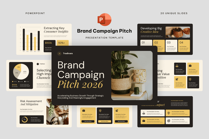 每种版面布局都使思路清晰明了,易于理解。这种结构有助于受众理解活动愿景、战略方针以及品牌举措的潜在影响。