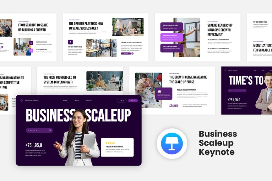 **企业规模化发展主题演讲**,采用创意主题。此模板可满足您的各种演示需求,提供多种主题和用途,并允许您更改文本、图像和颜色。