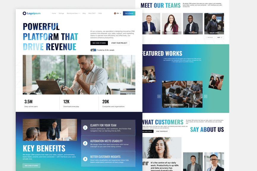 模型图片和照片仅用于展示,不包含在我的商品中。 文件包含: CRM 网站设计 Envato.fig CRM 网站设计字体