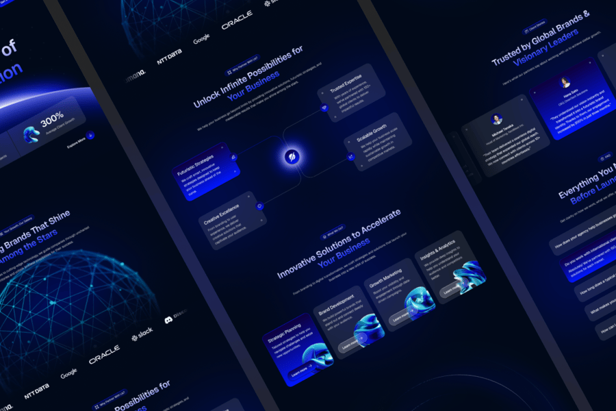 非常适合旨在以未来主义和专业设计展示其服务的商业咨询公司、营销机构、初创公司或创意工作室。