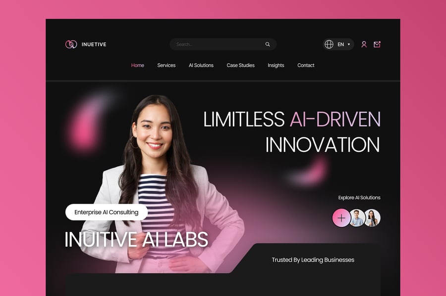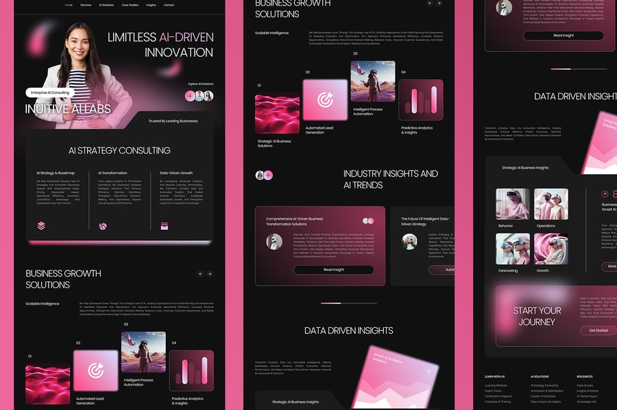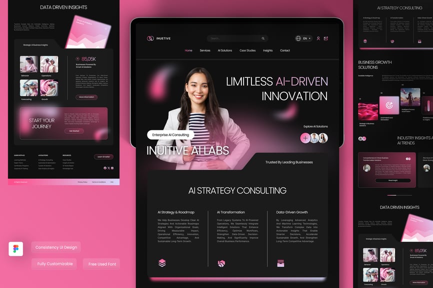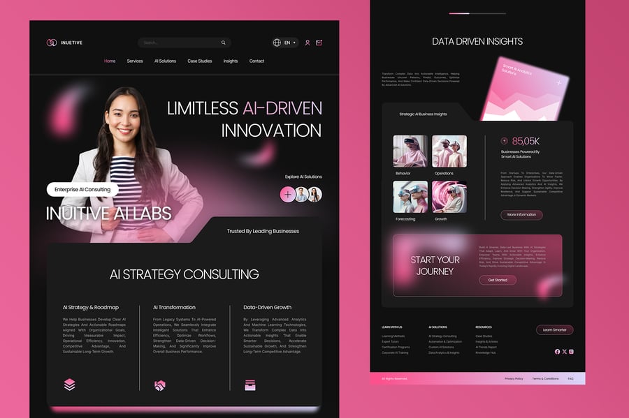 利用这款专业的AI战略和数据咨询用户界面设计,提升您的业务水平。它包含AI解决方案、数据驱动洞察和业务增长等全面版块,是科技公司的理想之选。助力客户通过高级分析和智能自动化实现无限创新和战略转型。