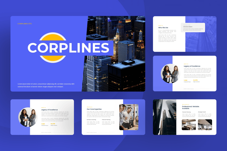 商务演示、公司演示、公司简介、公司模板、专业演示、现代商务、极简演示、简洁设计、创业公司路演、投资者演示、营销方案、年度报告、多用途模板、企业品牌推广、商业战略,也可用于个人作品集。