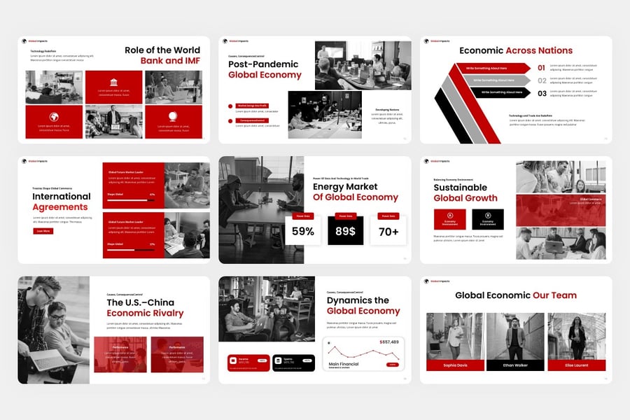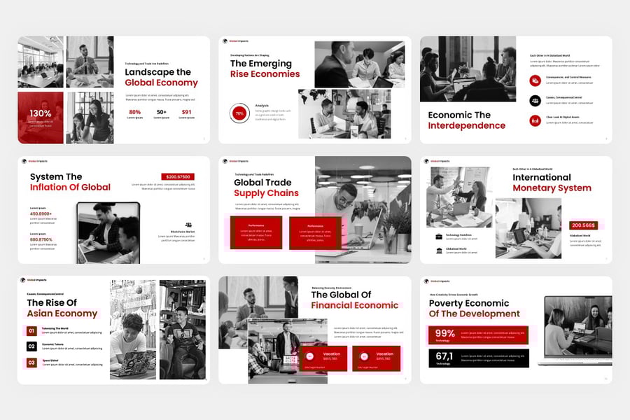 使用全球经济演示模板,让您的演示文稿成为杰作!该模板旨在传递信息、激发灵感并吸引观众,其简洁、时尚且专业的布局能够生动展现复杂的经济数据。它是专业人士、教育工作者、分析师、学生和企业领导者进行关于全球金融、市场和经济趋势的精彩演示的理想之选。