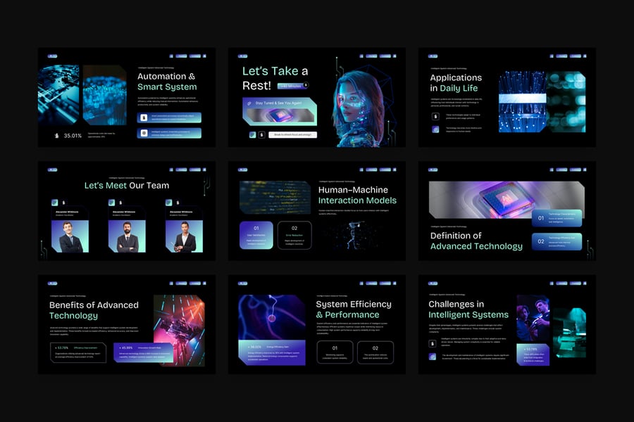 **高科技 PowerPoint 演示文稿**,采用创意主题。此模板不仅方便您进行演示,还提供多种主题和用途,并允许您更改文本、图像和颜色。