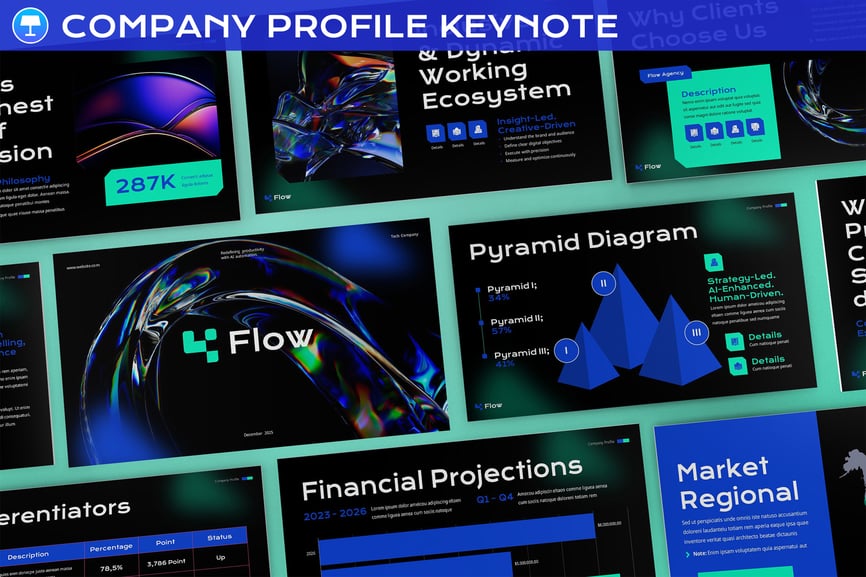 这款现代科技公司主题演讲模板专为重视清晰度、美观性和流畅演示流程的科技公司、数字创新者和产品驱动型团队而设计。该模板专为 Apple Keynote 打造,注重清晰的视觉层级、流畅的过渡效果和引人入胜的叙事方式,是打造高影响力演示的理想之选。它摒弃了繁杂的幻灯片,通过优雅的节奏和简约而强大的布局,着重展现产品愿景、创新理念和战略思维。尤其适用于高管简报、产品发布会和投资者演示等场合,在这些场合,第一印象和设计品质至关重要。