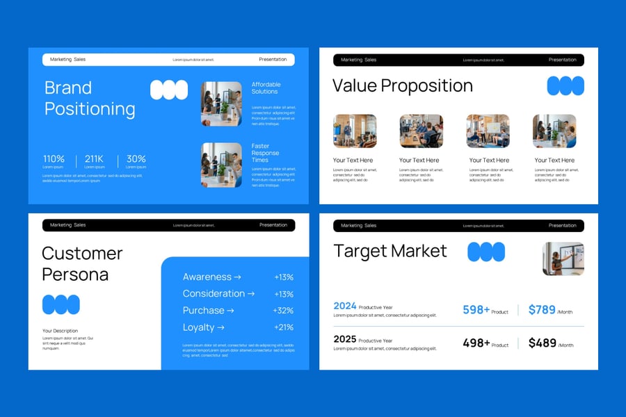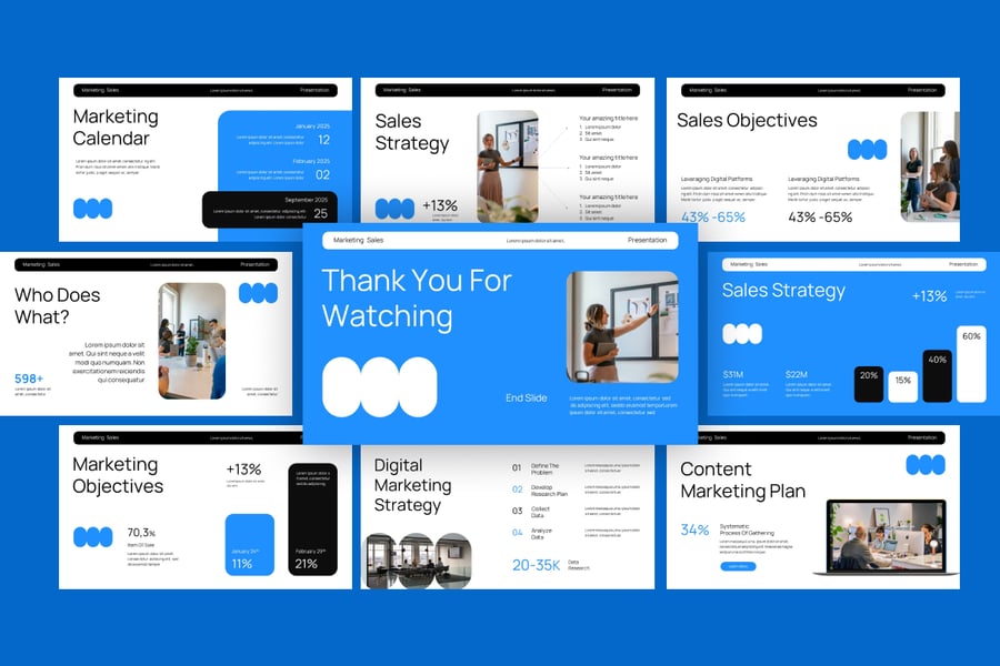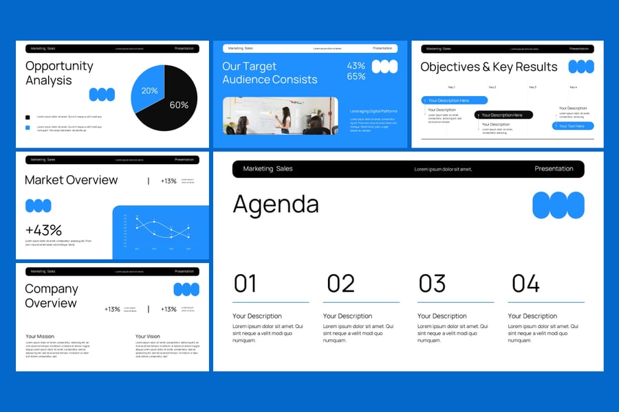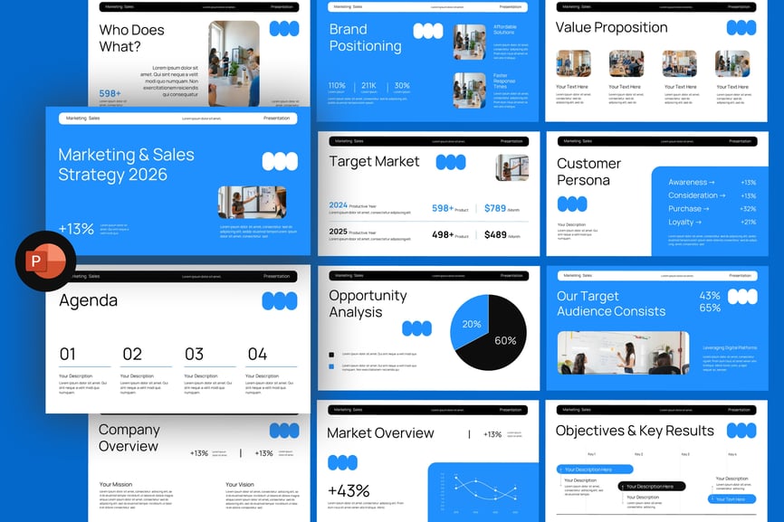 使用这款营销销售 PowerPoint 演示模板,提升您的商务演示效果。这套现代、简洁且高度专业的幻灯片专为营销人员、代理商、初创公司和企业团队设计。无论您是向投资者推介、展示营销计划,还是汇报季度销售业绩,此模板都能帮助您清晰有力地传达您的策略。