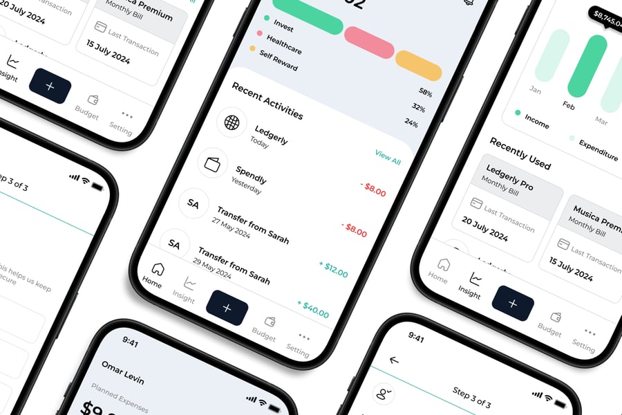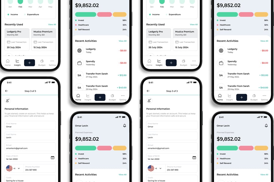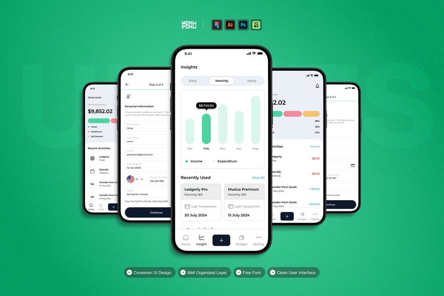 隆重推出**个人消费追踪器**移动应用UI套件,这是一款现代化且功能全面的解决方案,可助您创建简洁易用的应用界面。对于希望加快设计流程的设计师和开发者而言,这款UI套件堪称完美之选,它将您所需的所有基本组件整合在一个井然有序的软件包中。
