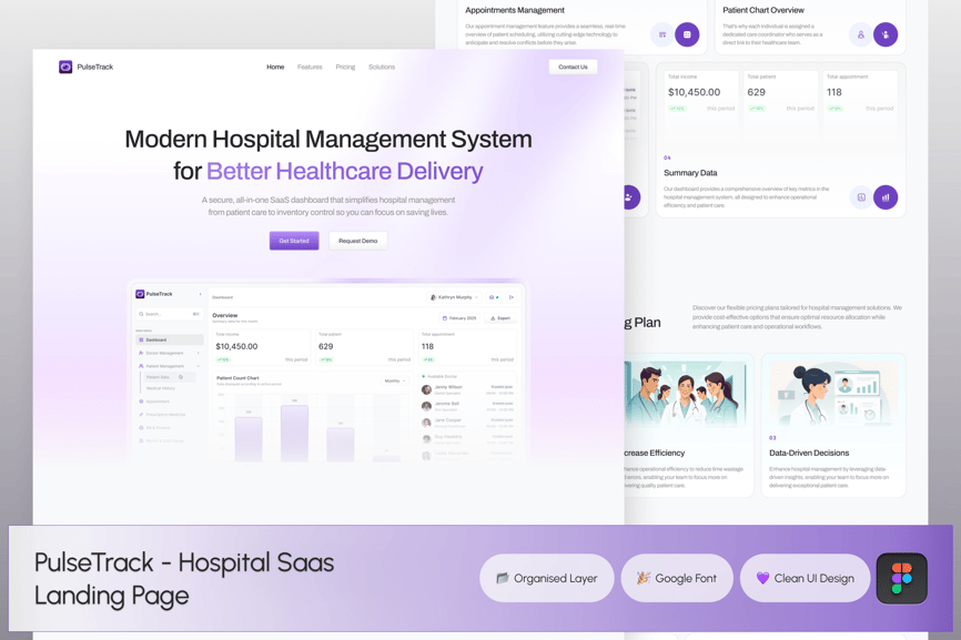 您好,这是我们为医院/诊所 SaaS 平台设计的新产品落地页,简洁的设计风格,适用于您的下一个项目。