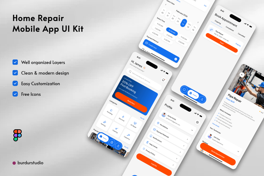 **家居维修移动应用用户界面套件**