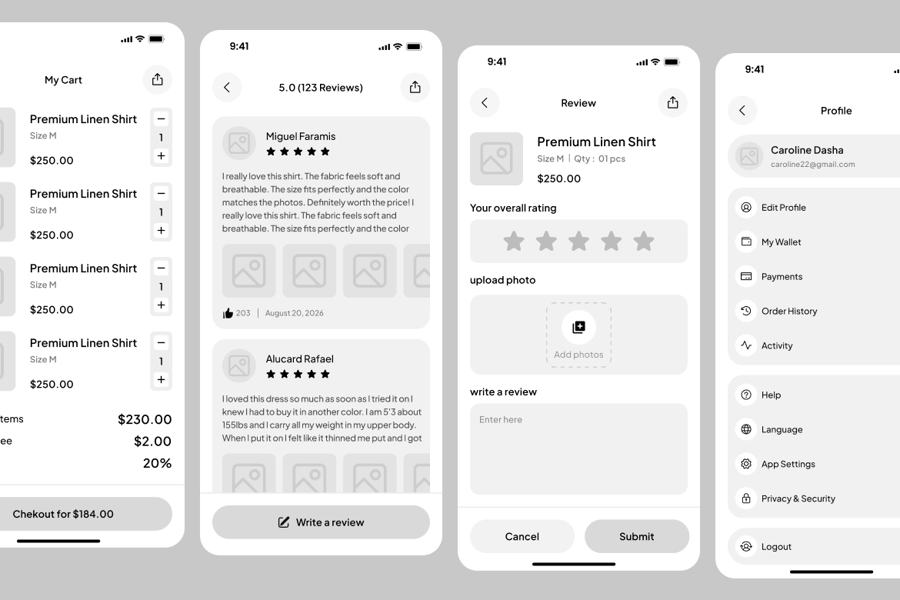 **商店 – 高保真线框图市场 UI 工具包**