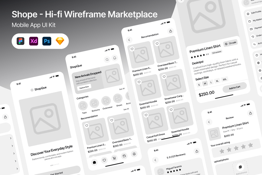 Shope – 高保真线框图市场 UI 套件