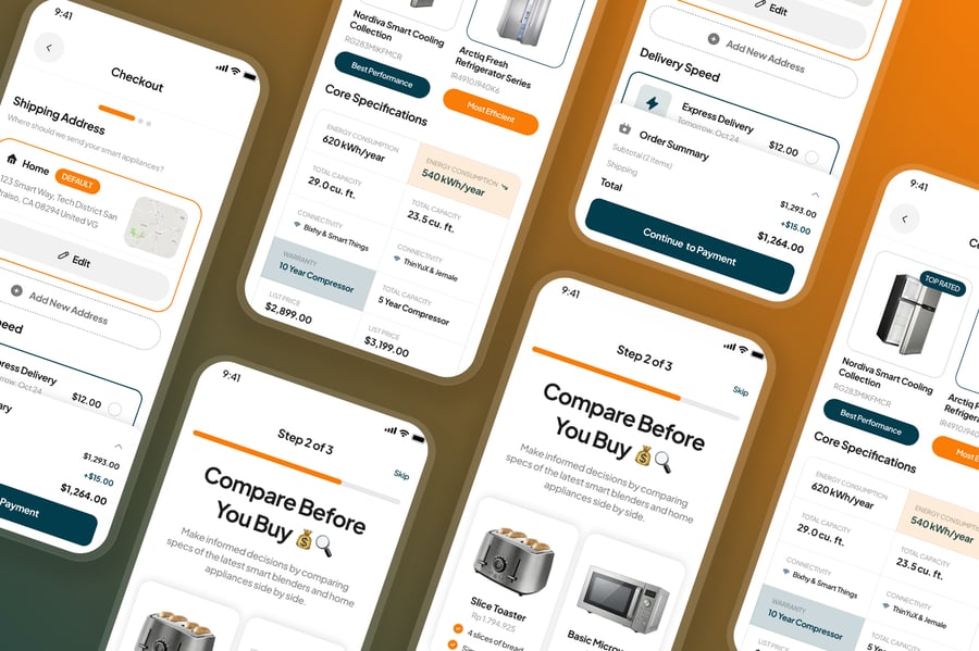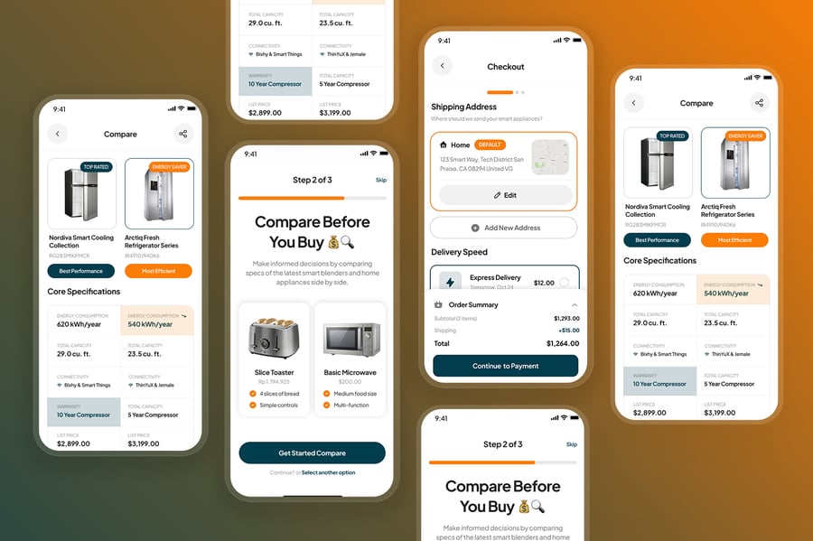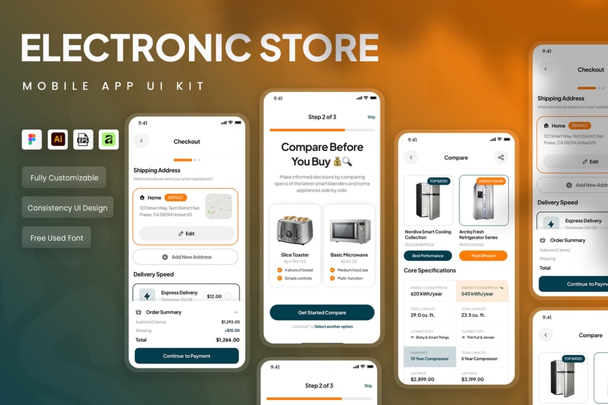 这款专为电商移动应用精心打造的专业UI套件,可助您加速电商项目。它包含流畅的产品浏览、对比、安全结账和高效物流追踪等关键界面,全面提升用户购物体验。这套功能齐全的套件,为您的下一款成功零售应用奠定了坚实的基础。