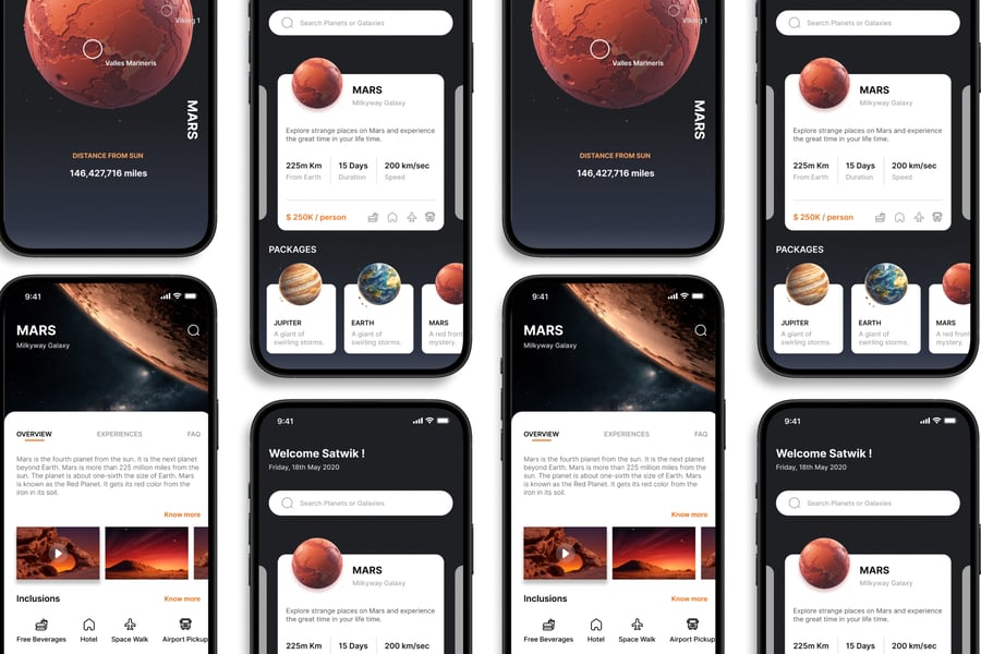 太空旅行 – 移动应用 UI 套件