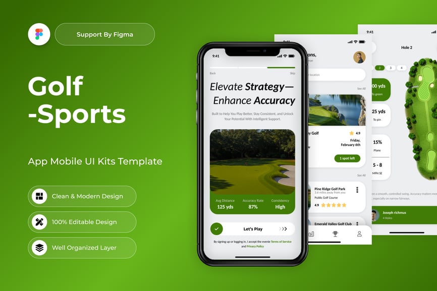 使用这款专业设计的模板,轻松打造极具影响力的_高尔夫运动移动应用_。