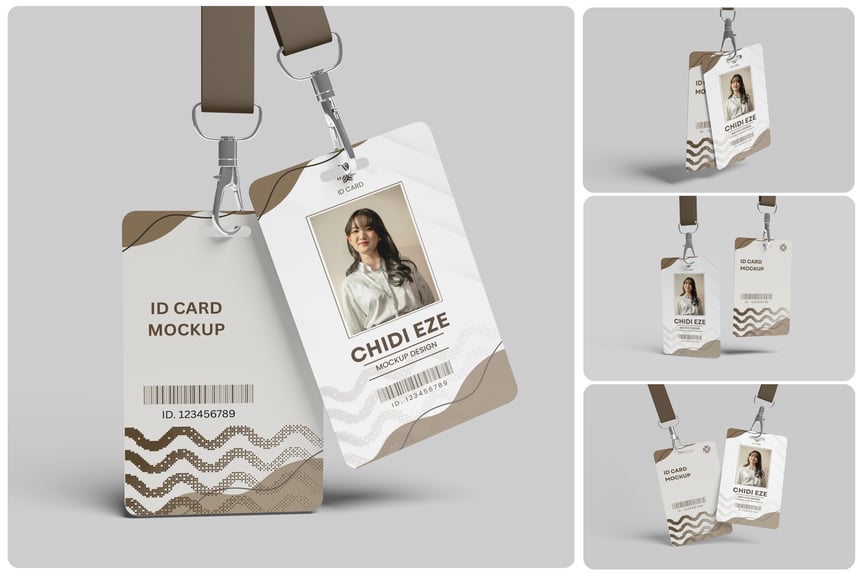 用这些精美的风格化样机展示您的身份证样机。此样机包含 4 个元素,并提供分层清晰的 PSD 文件。此外,此样机还采用了智能对象功能,这意味着您只需几秒钟即可轻松快捷地将当前设计替换为您自己的设计。