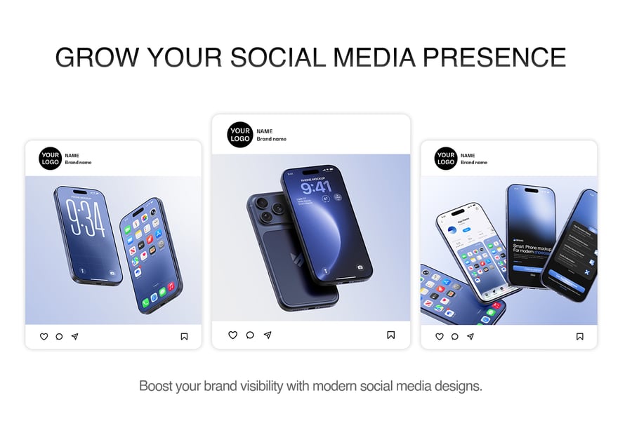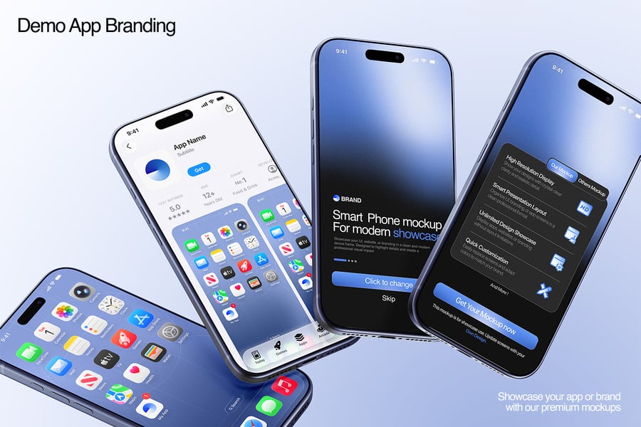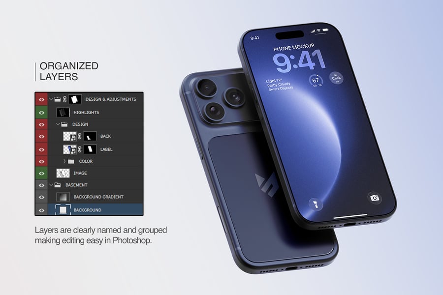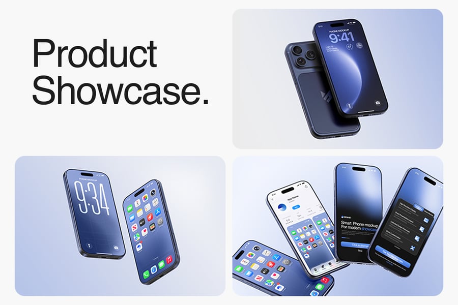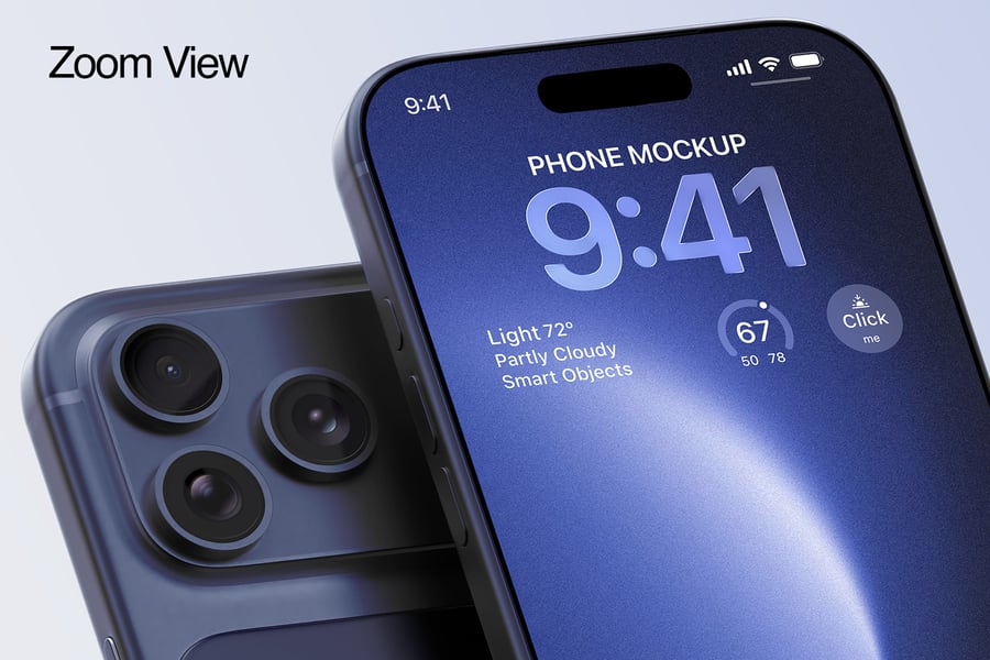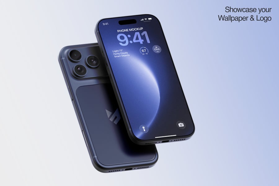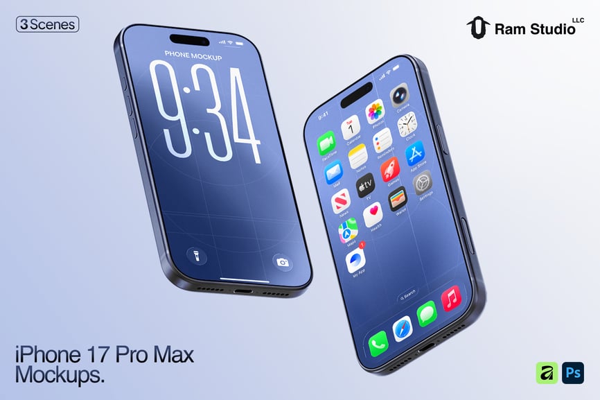 这款 iPhone 17 Pro Max 模型套装包含三种精美场景,提供多种设备角度,非常适合用于产品展示、细节特写和社交媒体视觉效果。模型采用逼真的 3D 模型制作,拥有精准的比例、逼真的摄像头模块和自然的反射效果,增强了视觉真实感。套装包含三个完全分层的 PSD 文件,方便设计师使用命名清晰的图层、画板和分组元素进行修改。屏幕占位符使用智能对象和可调节的边框,确保用户界面无需人工调整即可完美呈现。用户可以更改重要设备组件的颜色,例如边框、背板、摄像头环和网络接口卡槽,而专用图层则方便用户控制标签、徽章和 UI 强调色。阴影效果可以开启或关闭,以营造扁平简约风格或逼真的地面效果。模型包含清晰的屏幕遮罩区域和用于全屏设计的环绕参考线,以及用于印刷和大幅面展示的高分辨率专业照明图像。内置的社交媒体模板可实现快速发布,而多种布局(例如坐姿、卧姿和悬浮式)则为广告、产品页面和应用预览提供了灵活性。此外,深色主题演示和微距缩放视图可突出显示摄像头模块、扬声器和边框等高级功能。得益于组织良好的 PSD 图层,您可以快速高效地导出用于在线、社交媒体或演示文稿的 PNG 或 JPEG 素材。