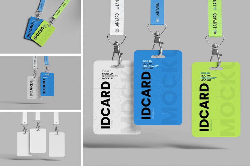 此产品包含 3 款身份证样机,可用于专业地展示您的设计。提供 PSD Photoshop 格式,并带有智能对象功能,可帮助您在几秒钟内将现有设计替换为您自己的设计。
