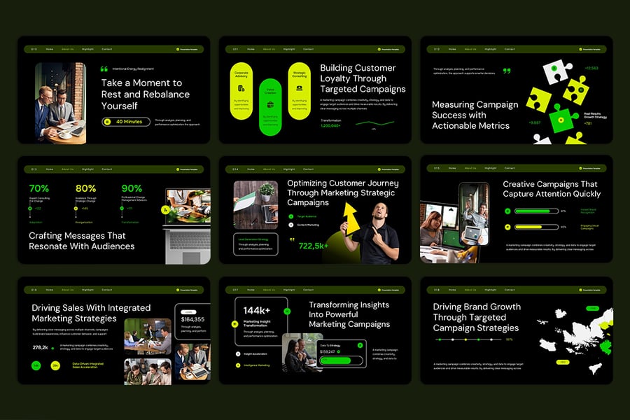 使用营销活动演示模板,清晰、自信、有视觉冲击力地传达您的营销理念——这是一套专业制作的幻灯片,旨在帮助营销人员、代理机构和业务团队以引人入胜、令人信服的方式展示他们的策略。