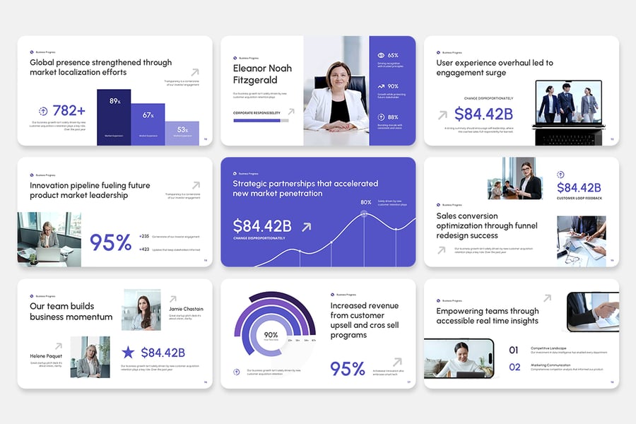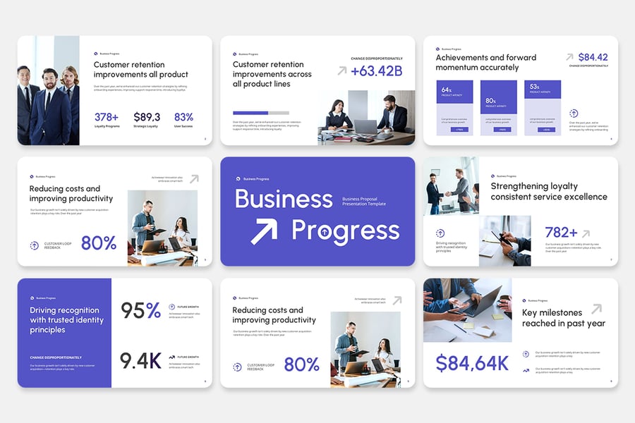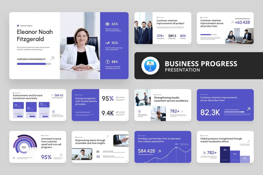 使用“商业进展演示模板”提升您的演示效果——这套时尚现代且完全可定制的幻灯片模板专为创意人士、时尚品牌、代理机构和潮流引领者而设计。该模板采用精美的视觉效果、优雅的字体和T台风格的布局,以独特的风格和强大的冲击力将您的想法生动呈现。